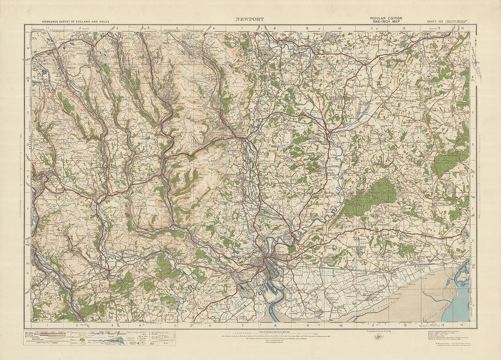 This Old Ordnance Survey Map, Sheet 102 - Newport, 1925, provides a fascinating glimpse into the past with its detailed depiction of the towns, cities, and interesting features in the region. The map covers the historic county of Monmouthshire in Wales, showcasing the towns of Cwmbran, Pontypool, Abertillery, Blackwood, and Caerphilly, along with the city of Newport itself.