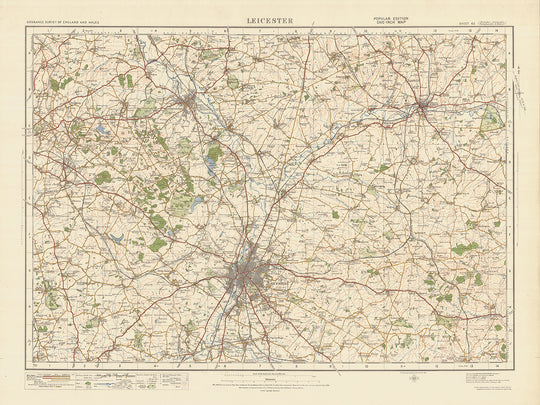 This Old Ordnance Survey Map, Sheet 63 - Leicester, published in 1925, offers a fascinating glimpse into the past, showcasing the towns, cities, and interesting features of the region. The map covers an area in England and Wales, specifically the historic county of Leicester. It includes notable settlements such as Leicester, Loughborough, Coalville, Melton Mowbray, Wigston, and Shepshed.