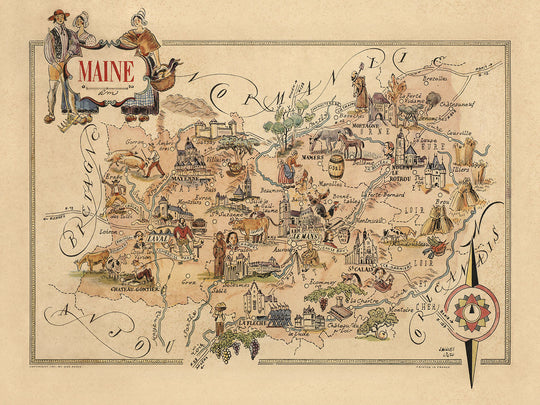 - The map is a thematic and pictorial representation of the Maine region in France.