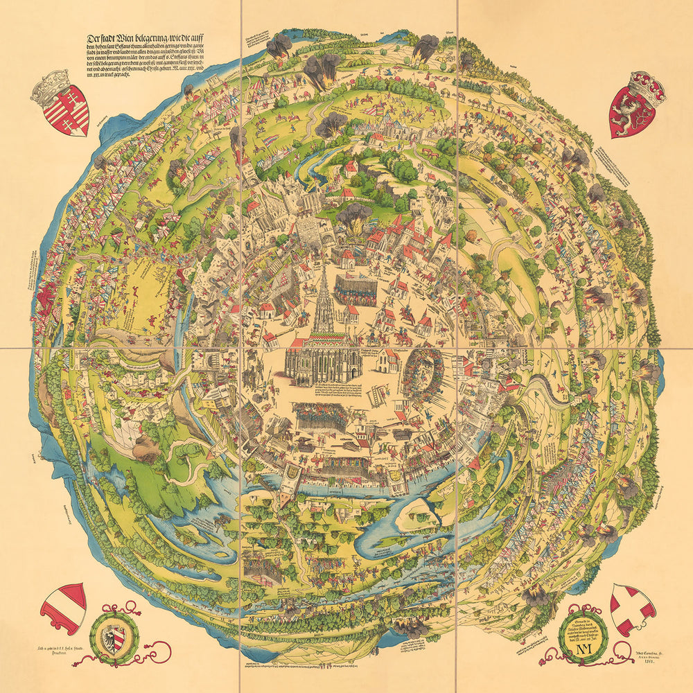 Old Pictorial Map of Turkish Siege of Vienna by Meldeman, 1530: St. Stephen's, Fires, Circular Panorama