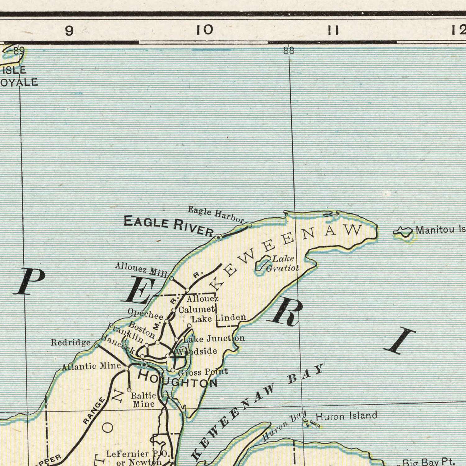 - Major water bodies: Lake Superior and other rivers and lakes marked prominently.