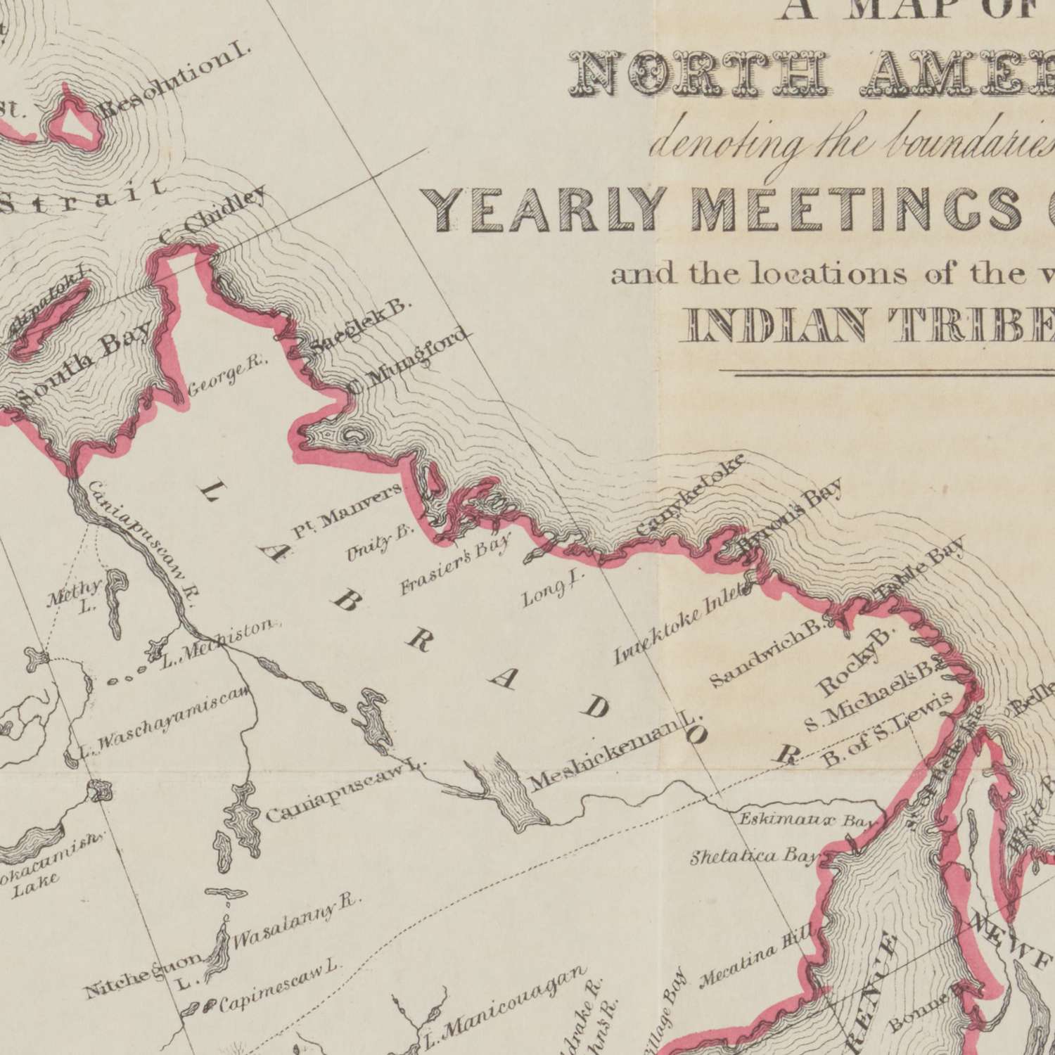 Bowden, a committed English Friend, devised a map that reflects the practical, documentary temper of Quaker reform. The Meeting for Sufferings—the London Yearly Meeting’s standing committee—tasked its Aborigines’ Committee with gathering evidence and raising awareness of injustices facing Indigenous peoples. Bowden’s solution is cartographic synthesis: a “moral topography” that overlays ecclesiastical administration and human displacement. The calibrated tints delineating Yearly Meetings speak to Quaker organization and pastoral reach, while the precise labeling of tribal territories supplies a sobering ledger of consequence. Issued in London, the sheet let transatlantic readers situate reports from the field—letters, minutes, and itinerant journals—against the hard facts of mountains crossed, rivers forded, and frontiers pushed.