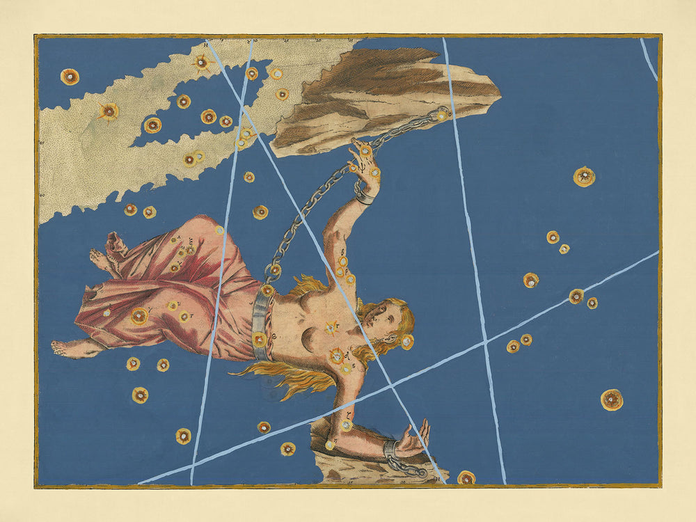 Rare Old Star Map of Andromeda by Johann Bayer, 1603 - Celestial Constellation Chart
