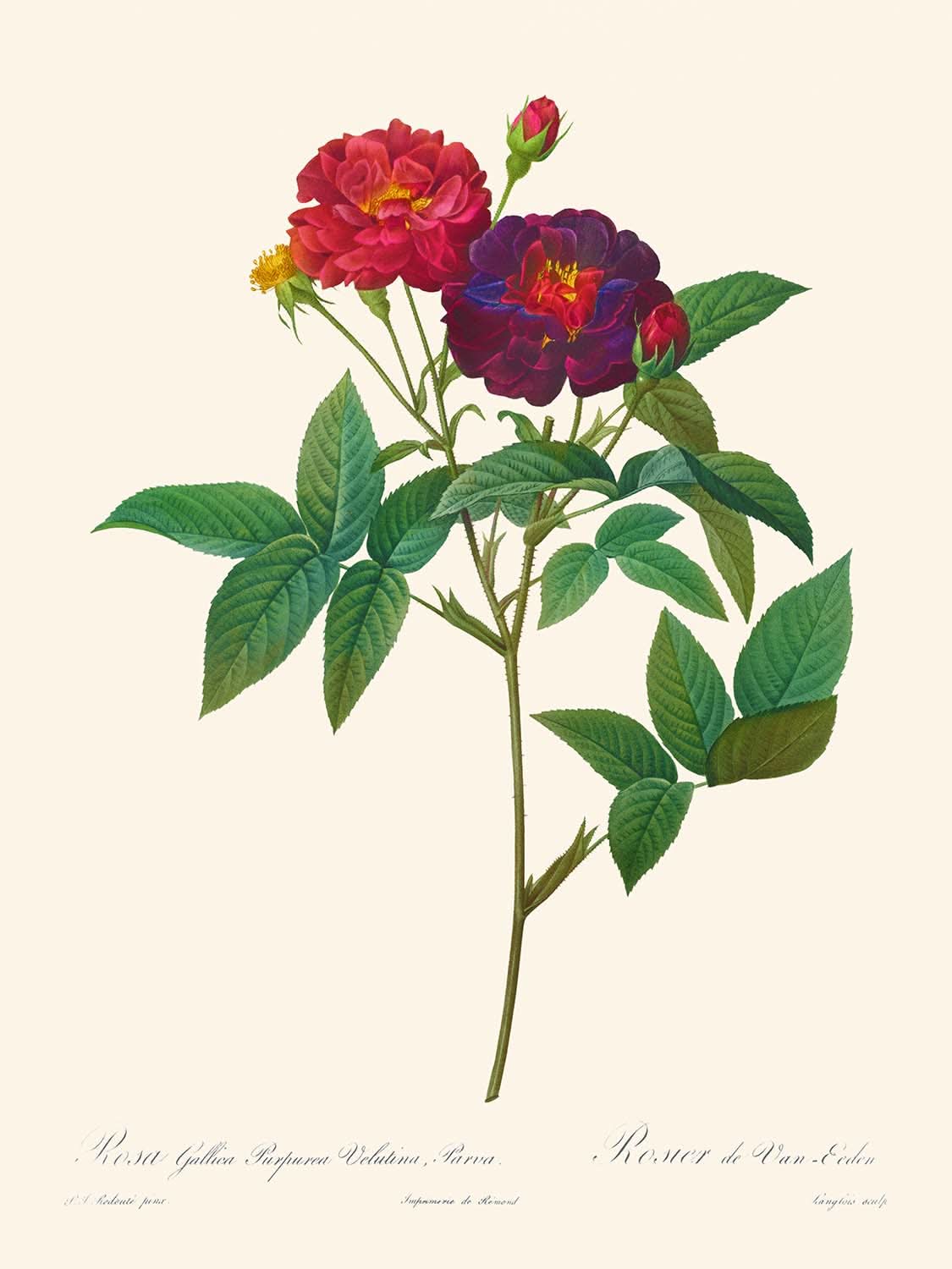 Rosa Gallica Purpurea Velutina Parva by Pierre-Joseph Redouté, 1817