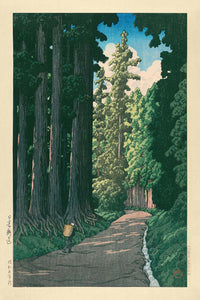 The artwork's timeless appeal comes from Kawase's delicate use of colors like muted greens and blues, which harmonize to create a mood of tranquility and serene beauty. The gentle, diffused light seen filtering through the foliage draws attention to the vivid play of shadows and highlights that dance along the road. This distinctive approach to depicting light and shadow truly exemplifies Kawase's exceptional craftsmanship and makes this print an exquisite addition to any art lover's collection.